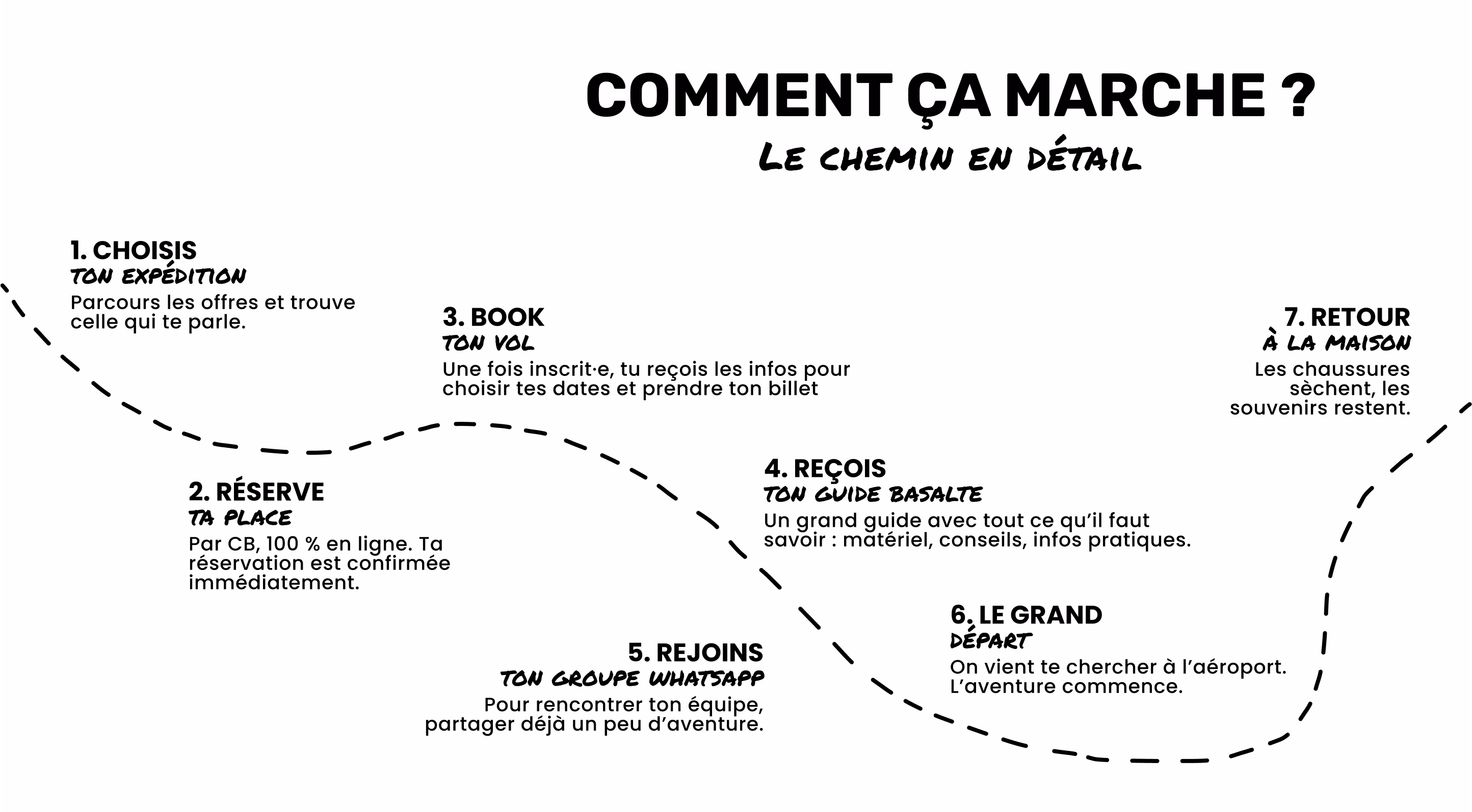 Le Guide du parfait Basalteur, c’est ton carnet de route pour avant, pendant et après le trek.